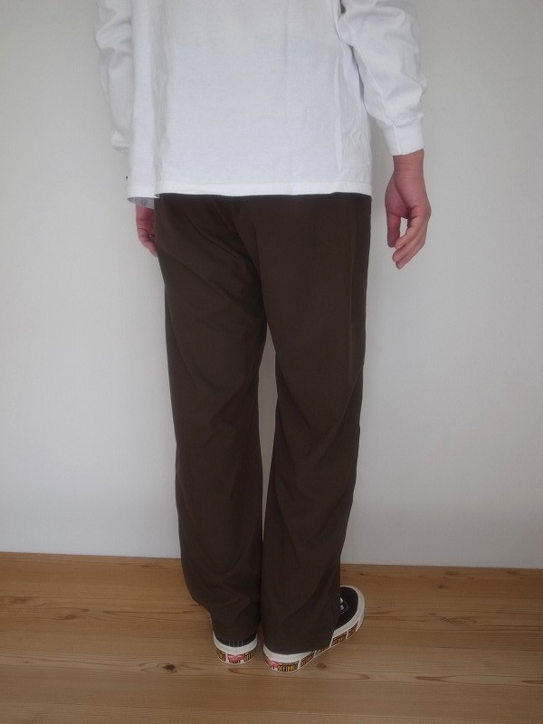 UVカットと吸水速乾性、微ストレッチを備えたポリエステルを使用したイージーパンツ。