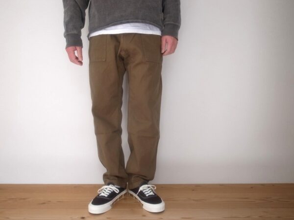 パンツ左右についた大きなポケット、後身頃のパッチポケットが特徴です。